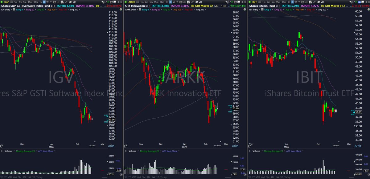 Software, speculative growth, and crypto are consolidating after leading the decline.