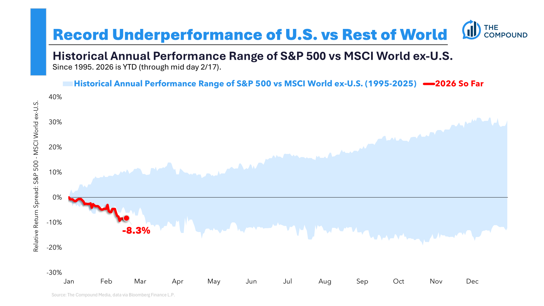 The S&P 500 is off to its weakest relative start versus global markets since 1995.
