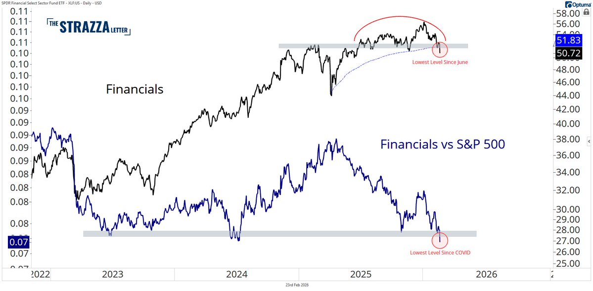 The Financial Sector ($XLF) made fresh 8-month lows today and suffered its worst day since April 4, 2025.