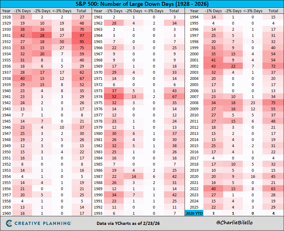 Yesterday, The S&P 500 declined 1%, marking its fourth daily loss of more than 1% this year.