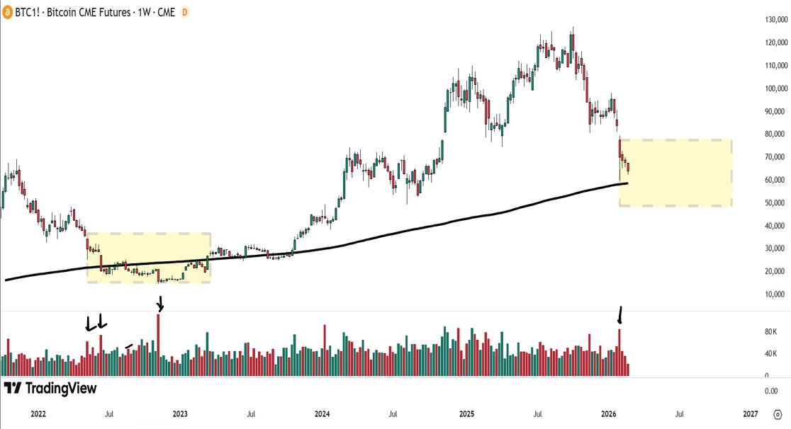 Bitcoin is currently resting on the 200-week simple moving average — a level that has repeatedly served as major structural support.