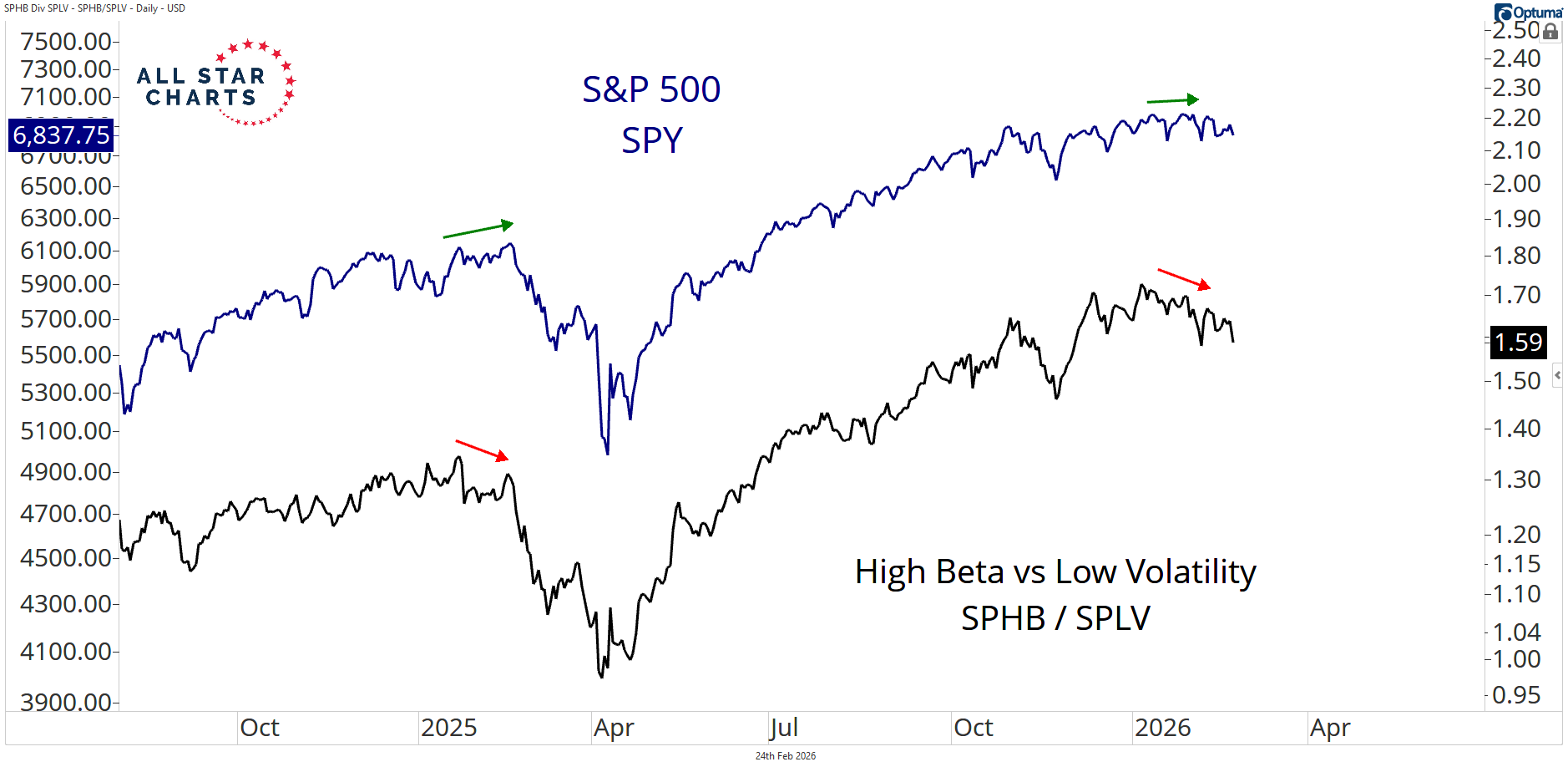 We're seeing high beta versus low volatility diverge from the S&P 500.