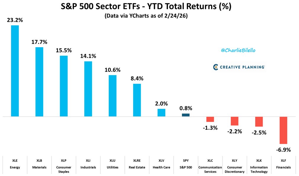 Offensive sectors are sitting at the bottom of the year-to-date leaderboard.