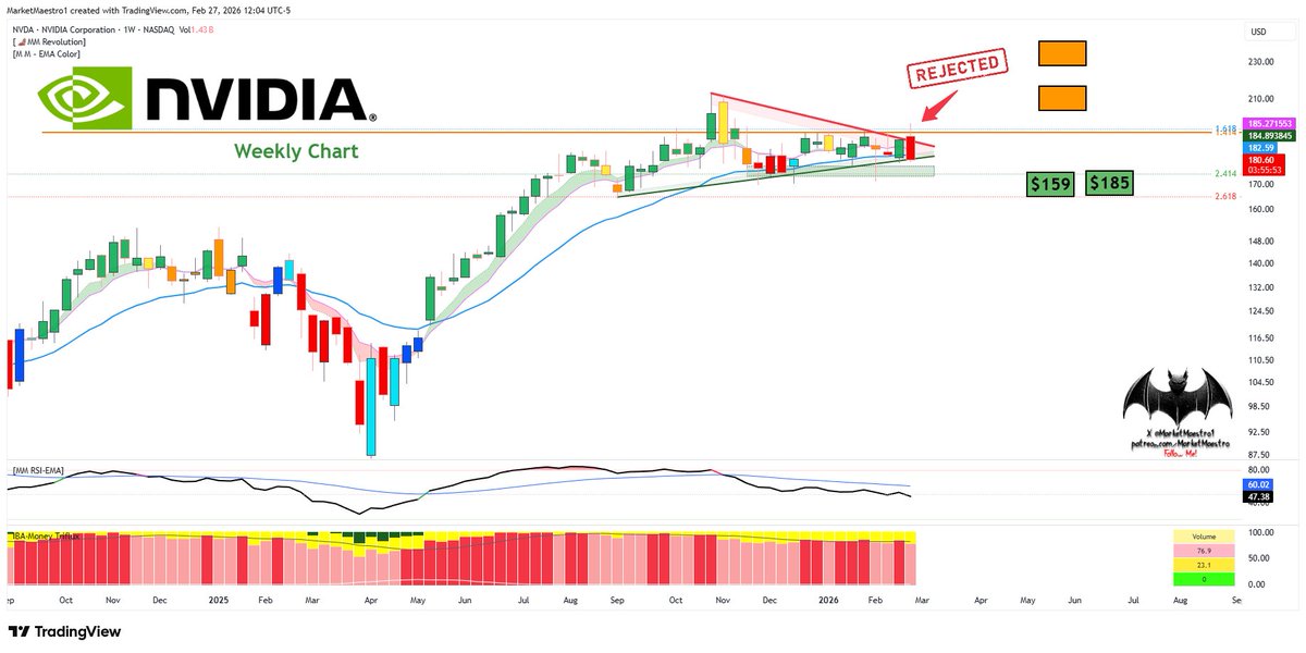 The direction of this triangle breakout in Nvidia will carry important implications for the broader market.