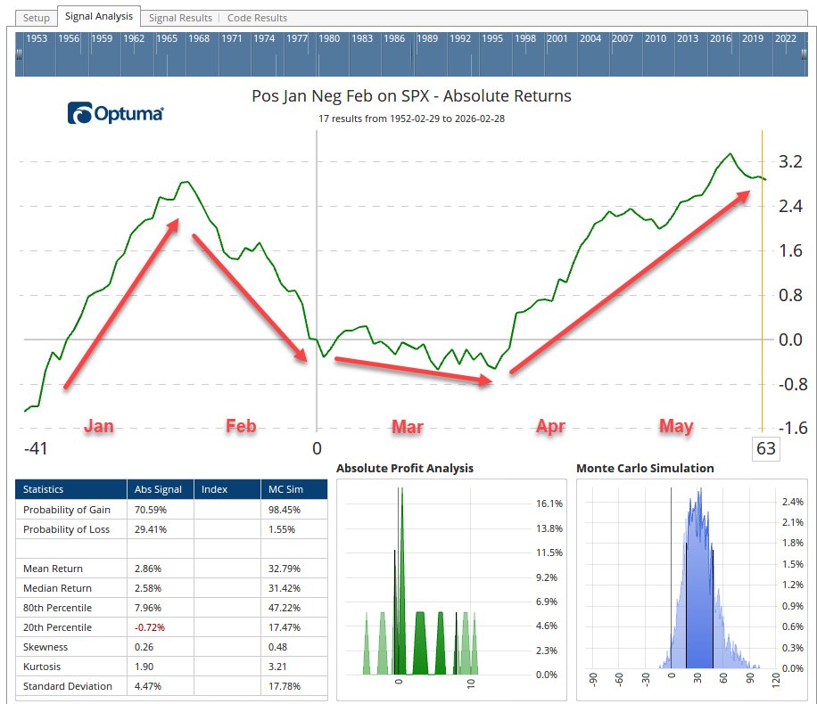 A positive January followed by a negative February has now occurred 18 times for the S&P 500.