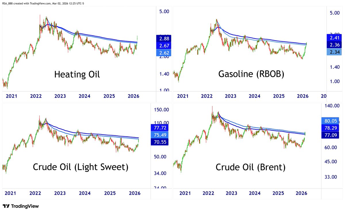 Heating Oil is the only major energy product trading above its 2022 AVWAP anchored highs, while the rest have found this level to be hard resistance.