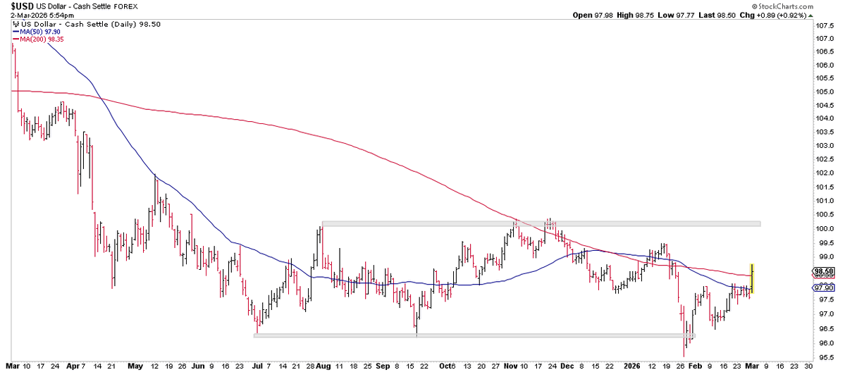 After a failed breakdown in the U.S. Dollar Index, $DXY has now reclaimed both its 50 and 200-day moving averages.