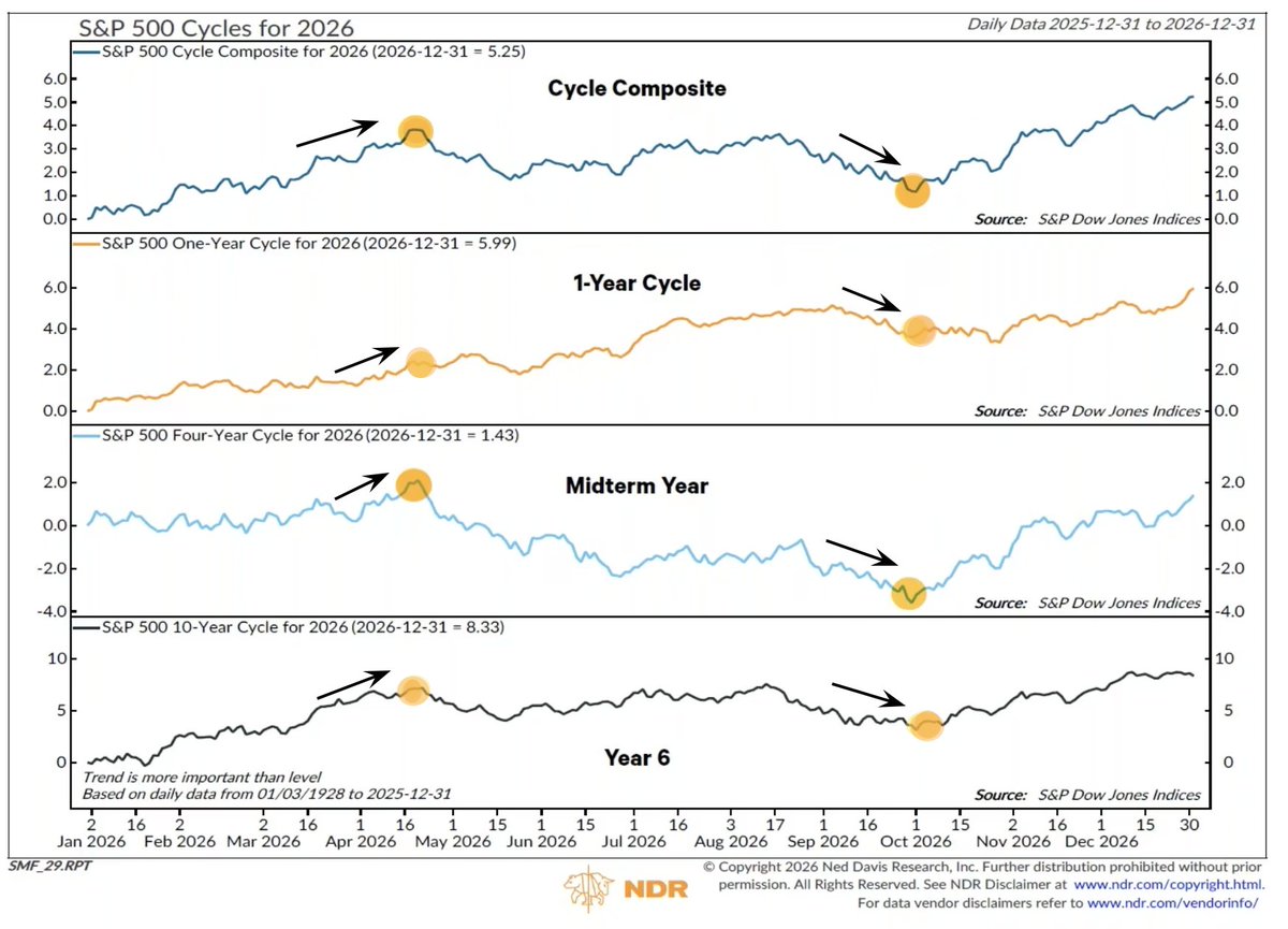 Almost every major cycle composite for 2026 points to a peak in Q2 before bottoming out in Q4.