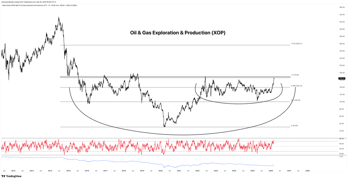 The Oil & Gas Exploration & Production ETF is attempting to complete a massive decade long reversal pattern.