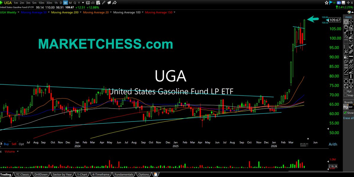 The United States Gasoline Fund (UGA) broke-out of a high and tight flag to new all-time highs today.
