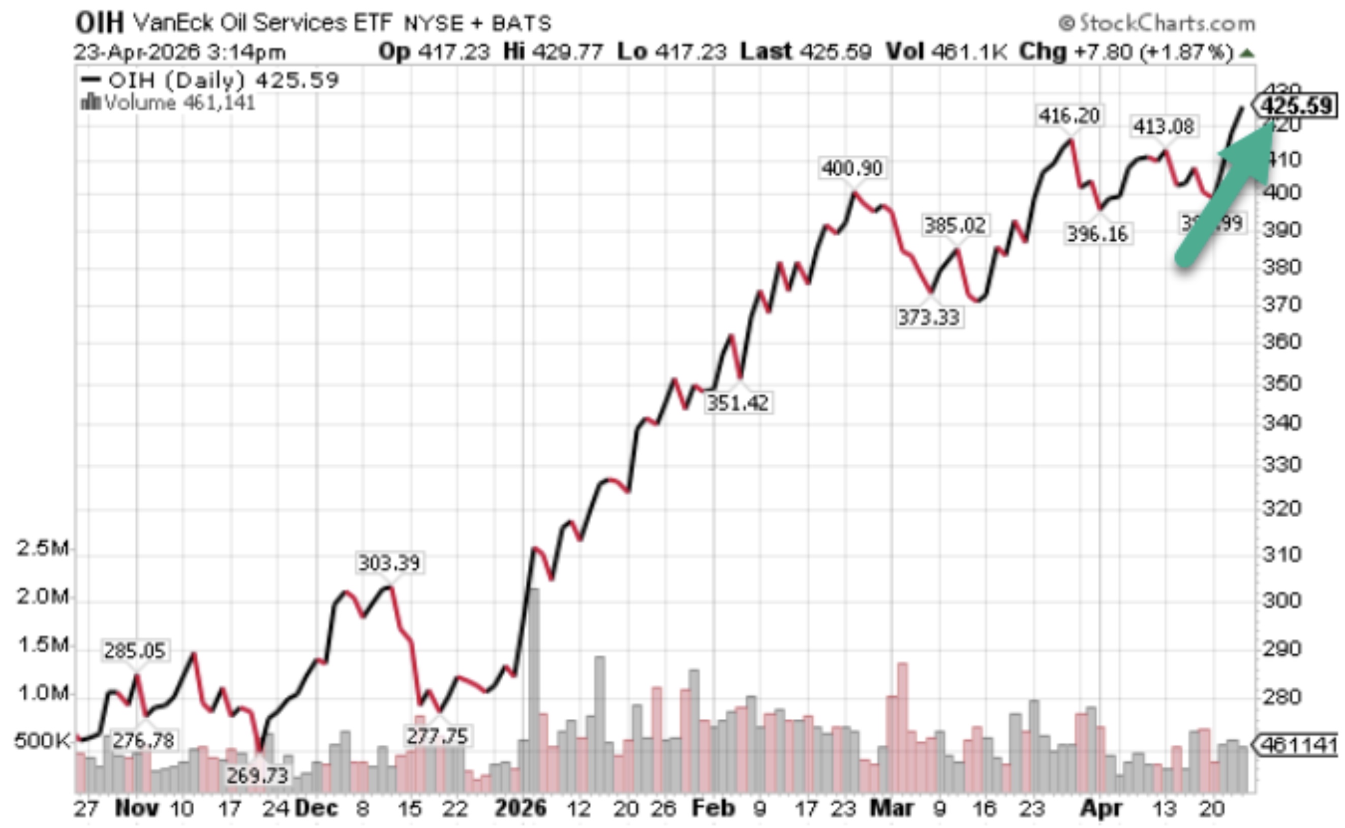 The Oil Services ETF (OIH) has pushed to fresh 8-year highs.