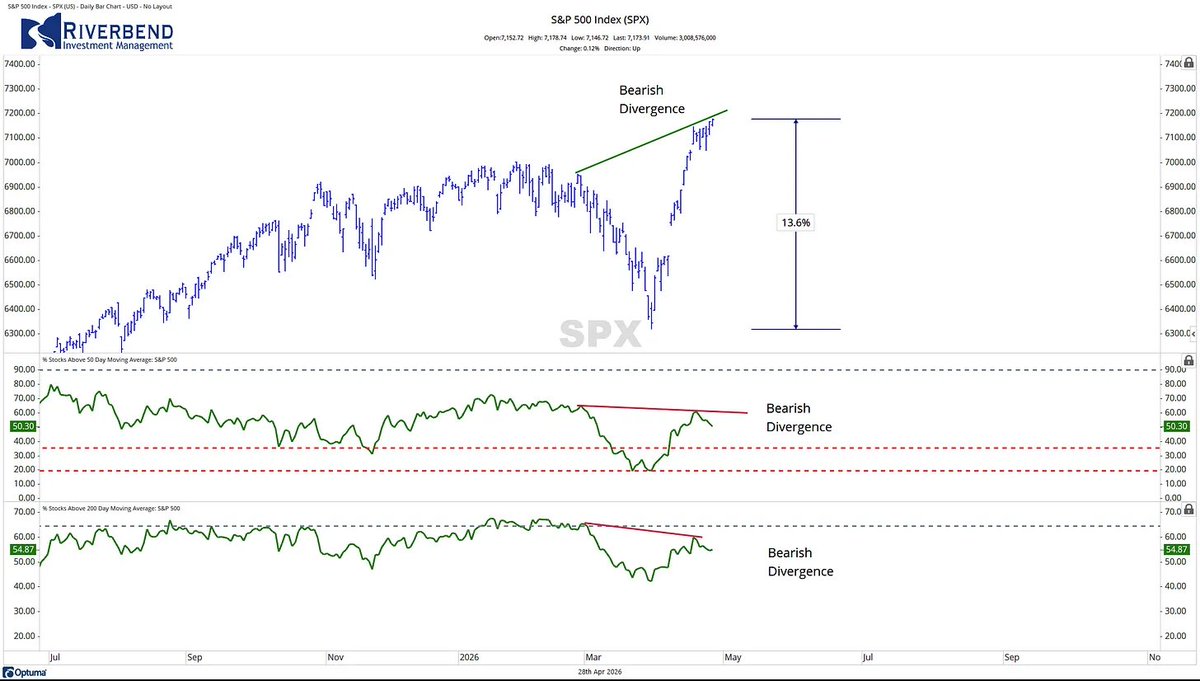 We're seeing a bearish breadth divergence in the S&P 500.