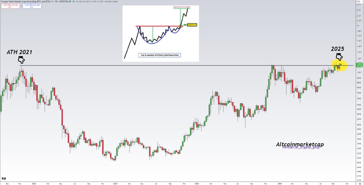 The Takeaway: Alt-Coins are finally along for the ride, with $TOTAL3 reclaiming its prior cycle highs and completing a multi-year accumulation pattern.
