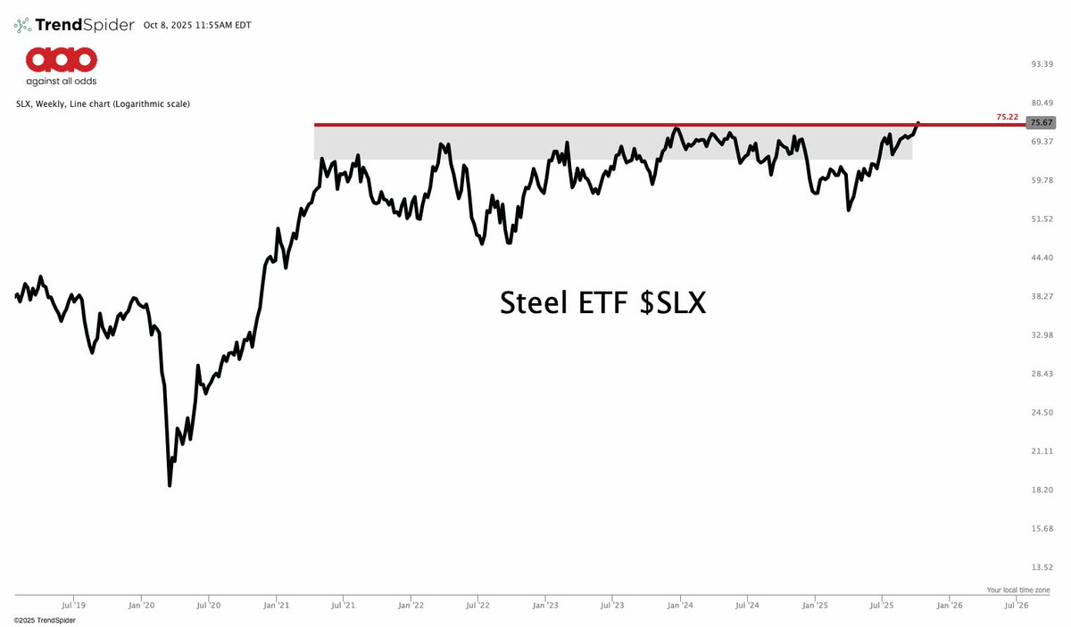 - The Steel ETF ($SLX) broke out to a 14-year high today, clearing its December 2023 peak of $74. It surged by +270% off the COVID lows before entering this four-year consolidation phase.