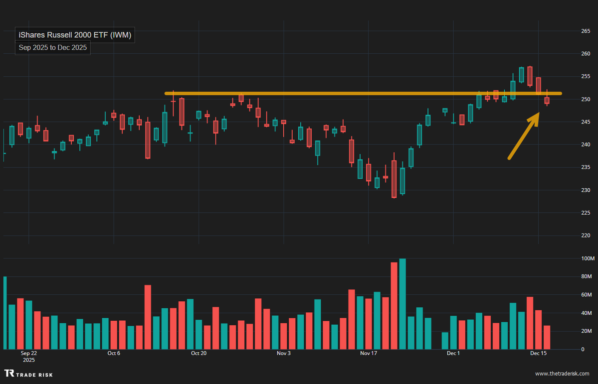 The Takeaway: $IWM is vulnerable to a Failed Breakout after throwing back to former resistance from the October peak. Holding or reclaiming $250 would open for Santa, but losing this key level could be a problem for Small Caps and the broader market.