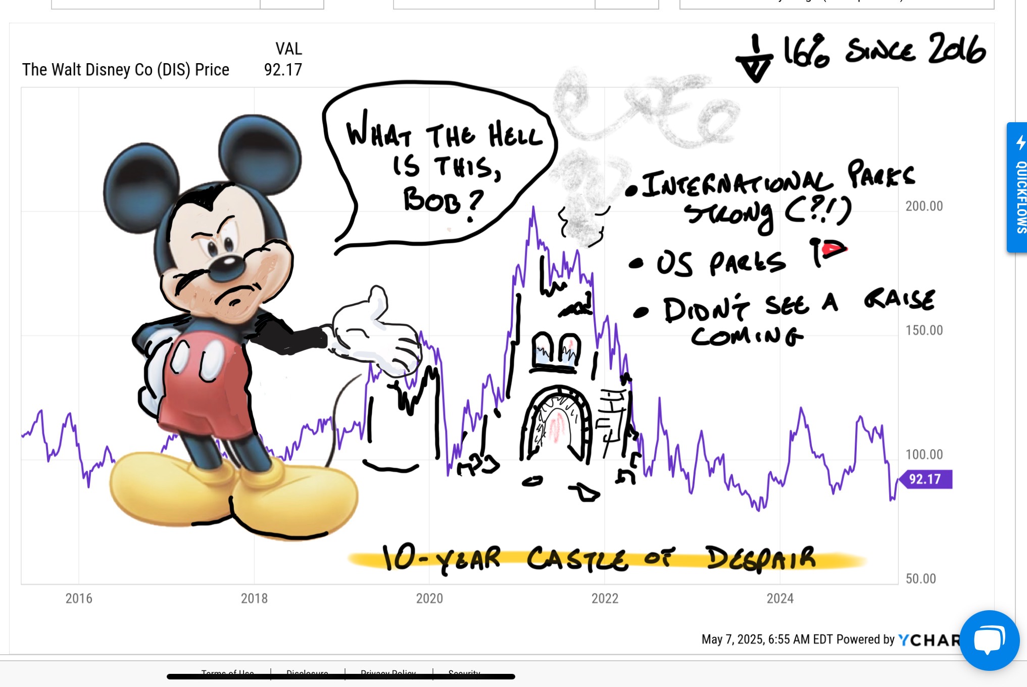 Unless you want to just flat out call BS on Disney's guidance it's very hard to find a reason to hate this quarter. Shares have been dead money the last decade. That's unacceptable. Iger wants to go out on top and he's got six quarters left. He's starting his kick.
