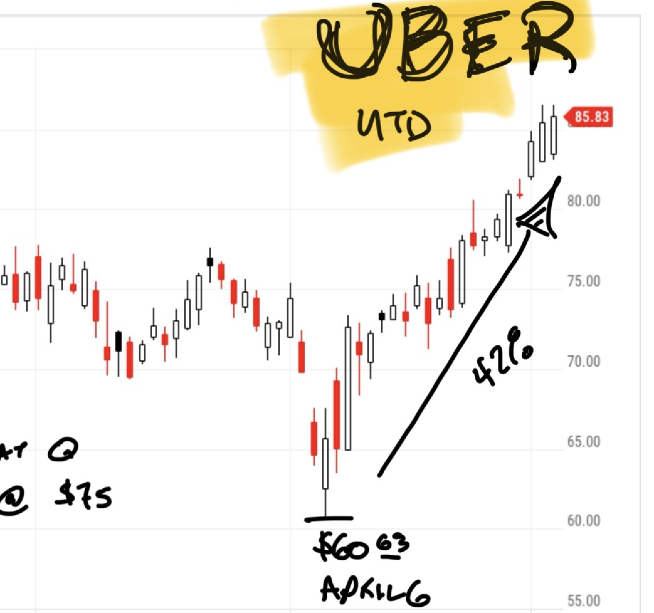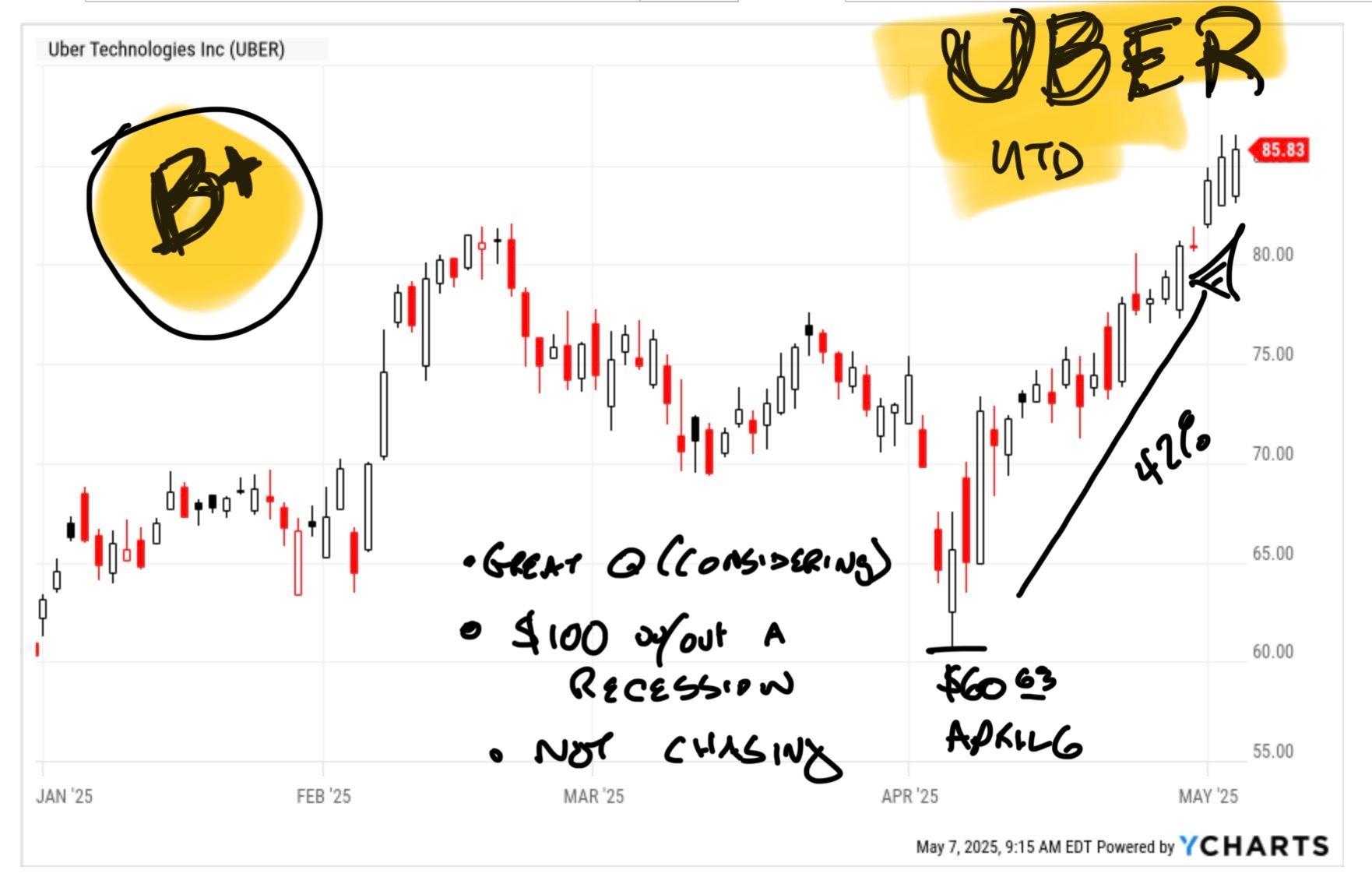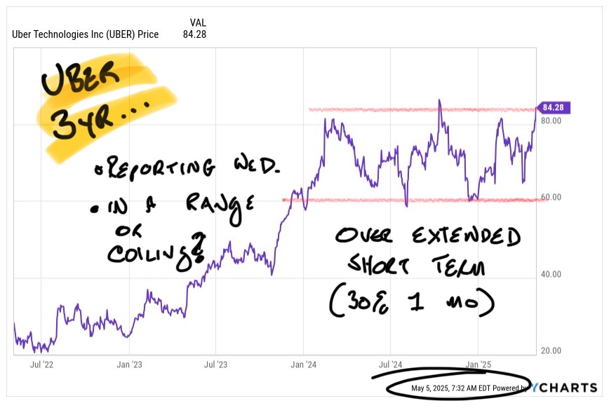 1. ) UBER shares are up 42% since April 6th. As discussed on Monday, Uber needed gargantuan numbers across the board. In this economy? Was never going to happen. The stock needed a little rest. We'll see how fast buyers come in: