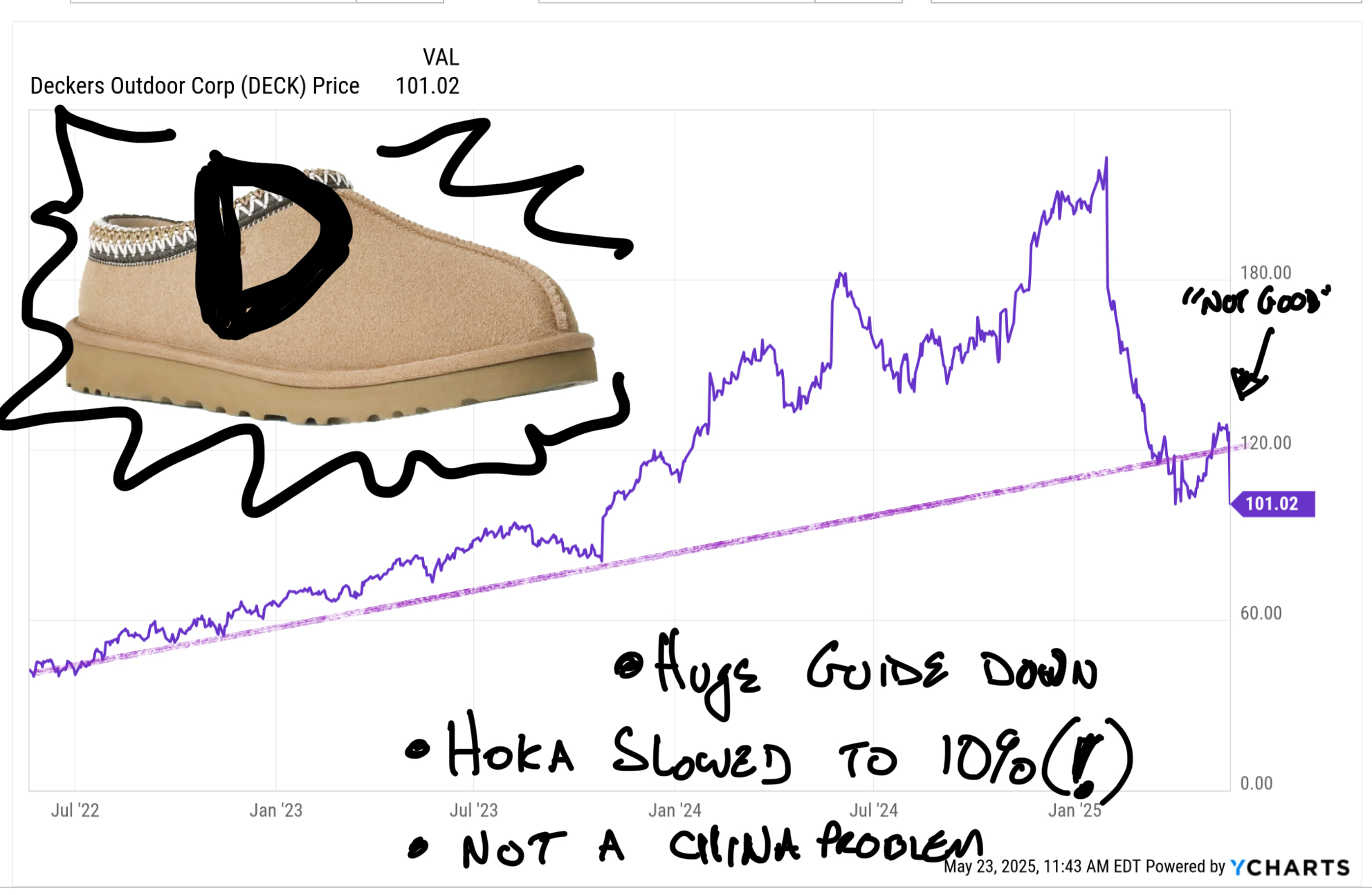 The makers of Hoka and Uggs said demand for the former has fallen to a multi-year low of 10% yr/yr growth; numbers that seemed particularly horrifying after everything we heard from On Holdings last week.