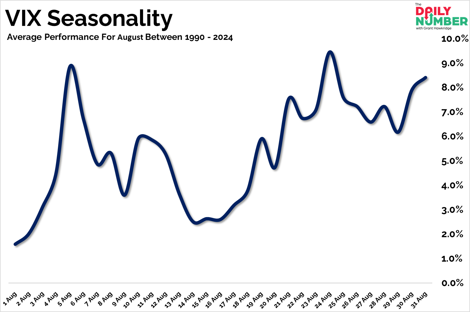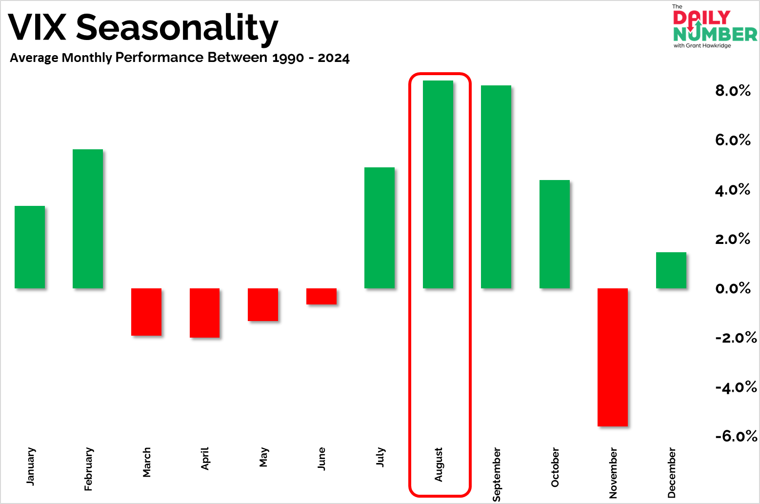 It’s the VIX’s most reliable spike window, with an average gain of 8.4% — the highest of any month over the past 34 years.