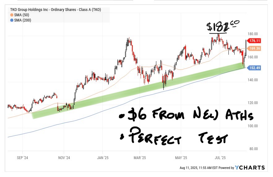 So, yeah, I like the deal. As I explained last week, I was adding TKO "at any opportunity". I don't like paying up but this deal is more than 4% to TKO. So I bought TKO near the open at $170.50.