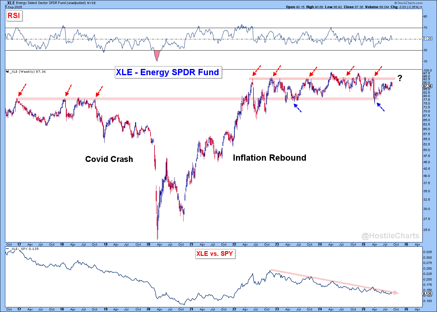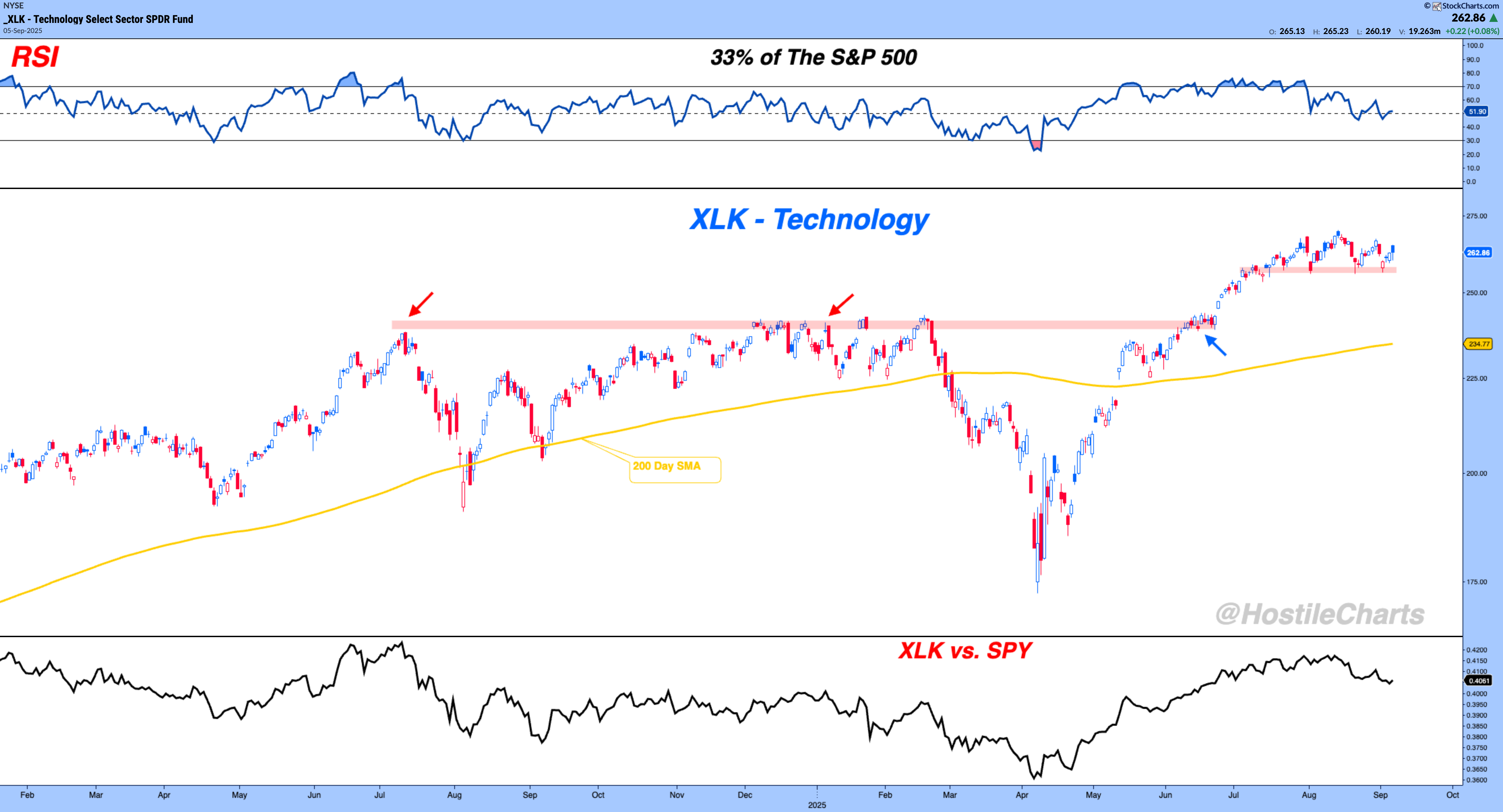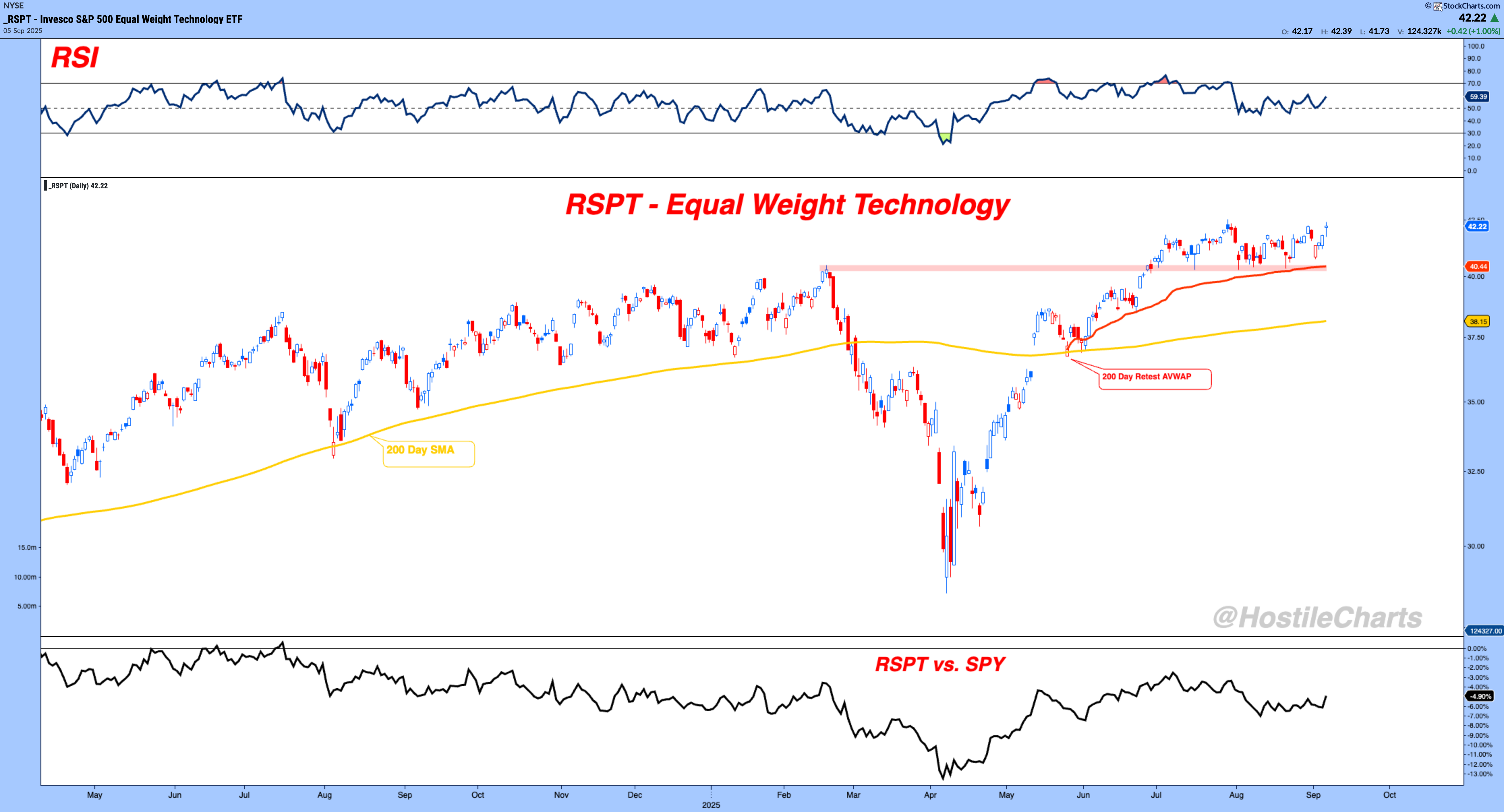Thompson's Two Cents The Sunday Stalk List | Ep. 15 Tantrum Time By Larry Thompson September 7, 2025 Sunday Stalk List | Ep 15Welcome back to The Sunday Stalk List.Every weekend, I review hundreds if not thousands of charts across U.S. indices, global markets, breadth, sentiment, and intermarket relationships.And now I’m opening up my stalk list.The names that stood out the most from my review.This week’s theme: Tantrum Time It’s tantrum time.Tech breaking down, the economy falling apart or inflation is running hot humans will find a reason to throw one.With earnings in the rearview, the spotlight shifts to the economy. PPI and CPI are on deck, and last Friday’s employment report already sparked another fit.I don’t dismiss the data, but I prefer the message in price. Numbers get revised. Forecasts are guesses. Price is truth. No revisions, no guessing. This week I’m stalking charts that cut through the noise, showing that neither the economy nor technology justify these tantrums....YET.Let’s get into it.The Tech Tantrum Markets have nuance. Too many are confusing rotation with obliteration. $XLK - Technology (Market Cap Weighted) We’re consolidating above a rising 200-day. That’s not what tops look like. Hold your horses on the “tech is breaking down” tantrum. $RSPT - Technology (Equally Weighted) Equal weight takes away the anecdotes and gives us the true weight of evidence. Once again, tech is consolidating above support. That’s healthy. Take a look at Tech breadth.Majority of the stocks are all above multi-timeframe trends. That’s not what breakdowns look like. Short-term choppiness, sure, but longer-term trend health is still intact.If this is a tantrum, it’s more noise than substance.The "Economic" Tantrum Every economic data point has become a spark for a new narrative, suddenly the economy is either too strong, too weak, or falling apart altogether.But here’s the reality: most of these charts are either consolidating or just getting started. That’s not the kind of setup where you want to over-forecast. Calling the final outcome from the first move is a fool’s errand. $TLT - 20 Year Bonds Yes, Bonds are carving out a bottom, but it’s still early. We’re just now retesting a falling 200-day. We’ve already seen several failed breakouts over the past year — patience matters here. $XLE - Energy is still stuck. Energy remains stuck in a sideways mess. Price will let us know when it’s time to take the inflation implications seriously. For now, we pay attention but no need to panic. $XLE & $TNX - Energy and Yields Energy and yields have a long history of moving together. Rising energy often fuels inflationary pressure and Fed action, falling energy does the opposite. Yet, here too, we’ve been stuck in a three-year sideways range.My Two Cents The temptation is always to jump the gun, to act like you’ve got the crystal ball no one else has.But markets don’t reward that. They reward waiting for confirmation. Price will show us when something truly breaks .... it always has, and it always will.See you next week. My Weekly Show - Thompson’s Two Cents🎥 Thompson Two Cents LiveI go live every Friday at 5 PM EST.🚀 Throw it on 1.5x speed and let it rip.👍 Give it a like. It’s the easiest way to show me some love. More from Thompson's Two Cents Larry Thompson Don't Buy Fear I Got A Better Idea October 16, 2025 Larry Thompson The Sunday Stalk List | Ep. 19 Let The Dust Settle October 11, 2025 Larry Thompson The Market’s Favorite Trick It's Never This Loud October 7, 2025 Sign Up TodayGet expert market insights delivered straight to your inbox. You must have JavaScript enabled to use this form. Email Address