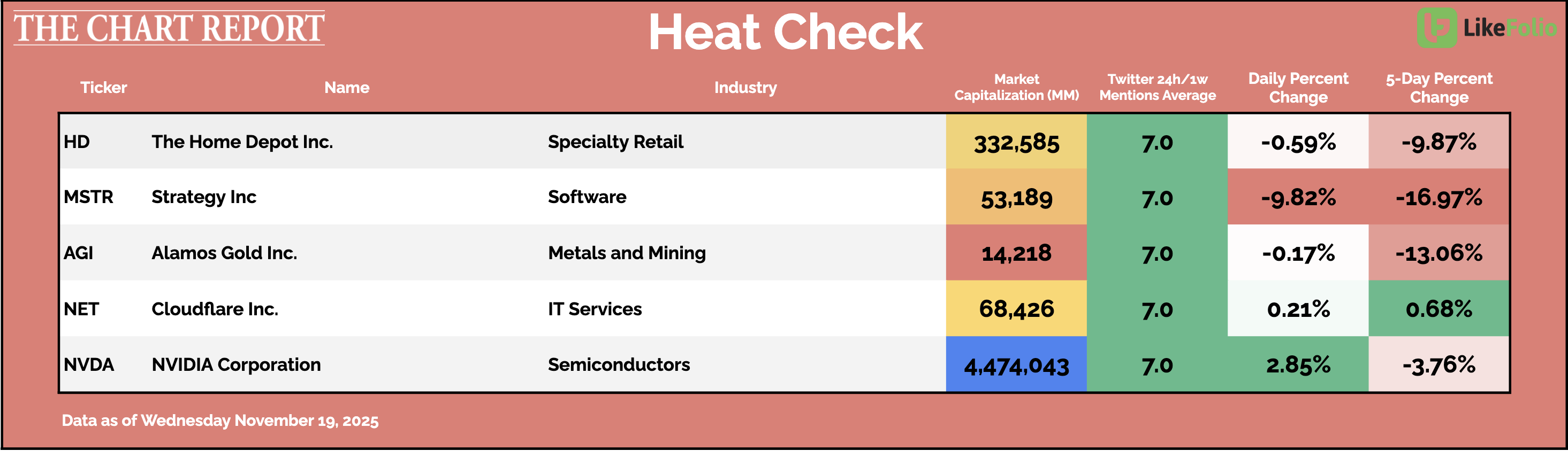 The Chart Report: Private Access Members Only A Bad Break for Home Depot 🔥 The Heat Check By Patrick Dunuwila November 19, 2025 Article Sales Message Trade ideas every single week.Exclusive video commentary breaking down our hottest trade ideas.Regular mid-week updates on the latest stocks moving the markets.Top 10 — The most important charts on the market, delivered every weekend.A Members-only trade ideas portfolio, updated with key levels for all positions.First-mover access to new scans, analysis, features, and access to the analyst team. You need to have a subscription to access this content in full. Log in or subscribe today to unlock new features and receive Member Benefits. Log in or Subscribe More from The Chart Report: Private Access Patrick Dunuwila Lemonade Squeezed 🔥 The Heat Check November 5, 2025 Patrick Dunuwila Earnings Season Kicks Off 🔥 The Heat Check October 22, 2025 Patrick Dunuwila The Biotech × AI Trade 🔥 The Heat Check October 8, 2025