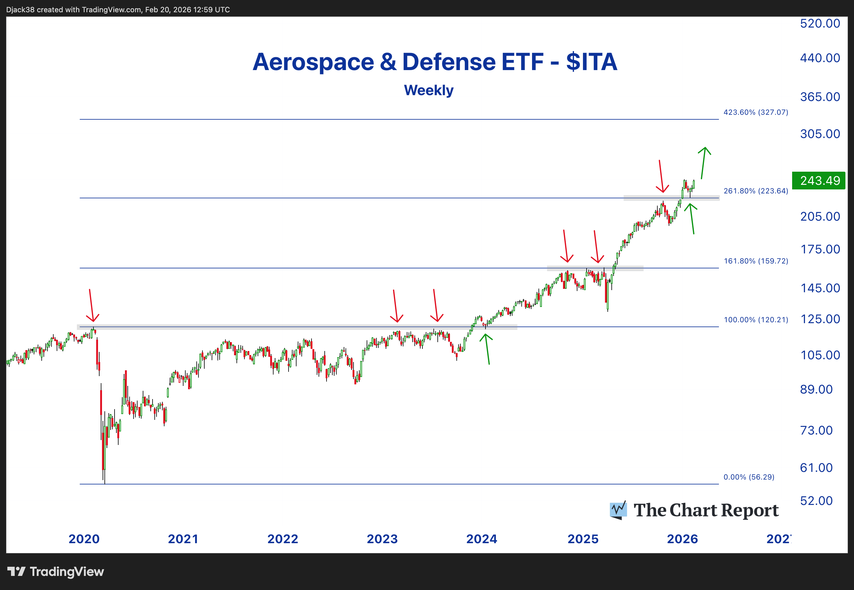 Notably, $ITA retested the 2.618% extension after it initially capped the rally, successfully flipping prior resistance into support.