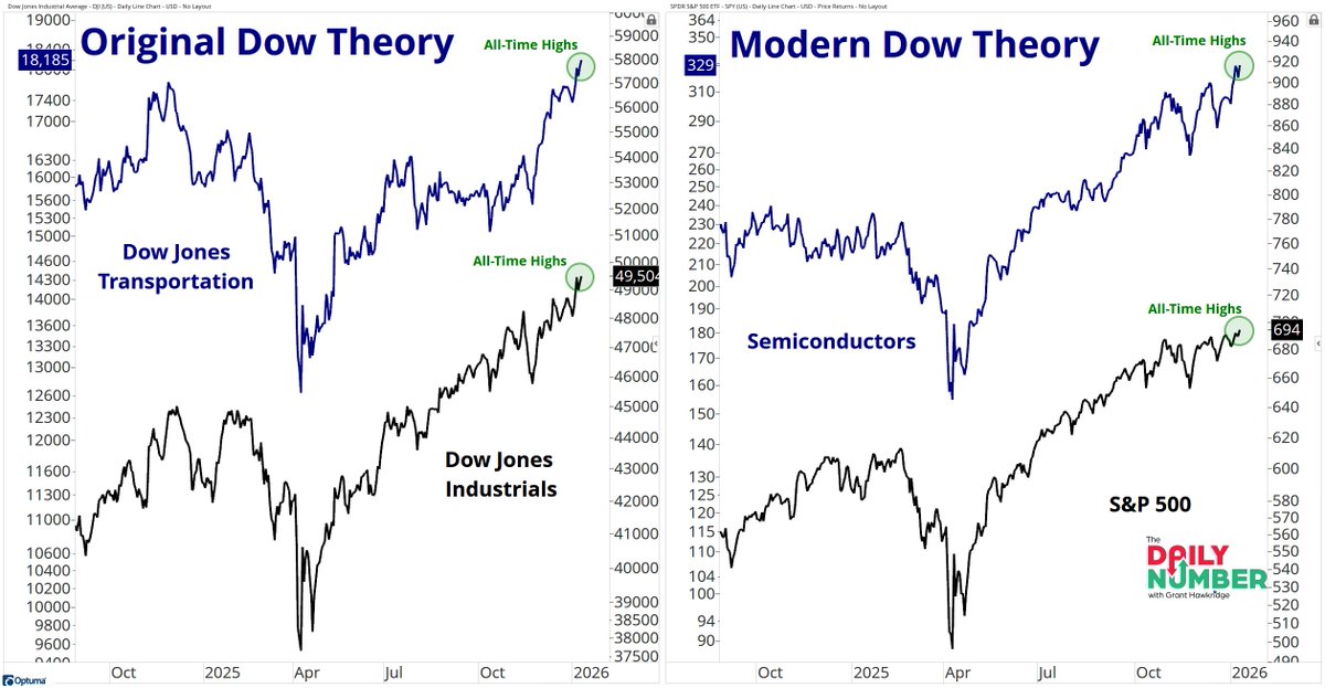 - Grant notes that the modern-day interpretation of Dow Theory is also flashing confirmation, as Semiconductors continue to register record highs alongside the S&P 500.