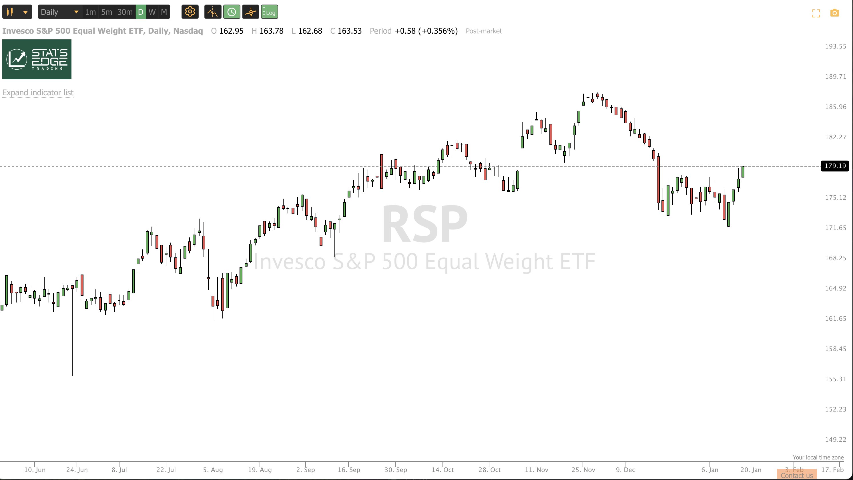 The Takeaway: While the S&P 500 closed slightly lower today, the Equal Weight S&P 500 ($RSP) outperformed by a wide margin, indicating healthy rotation into the broader market.