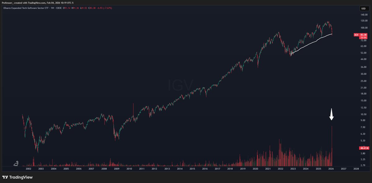 • Software ($IGV) is currently testing its anchored VWAP from the 2022 bear market lows, coinciding with the highest single-day volume on record.