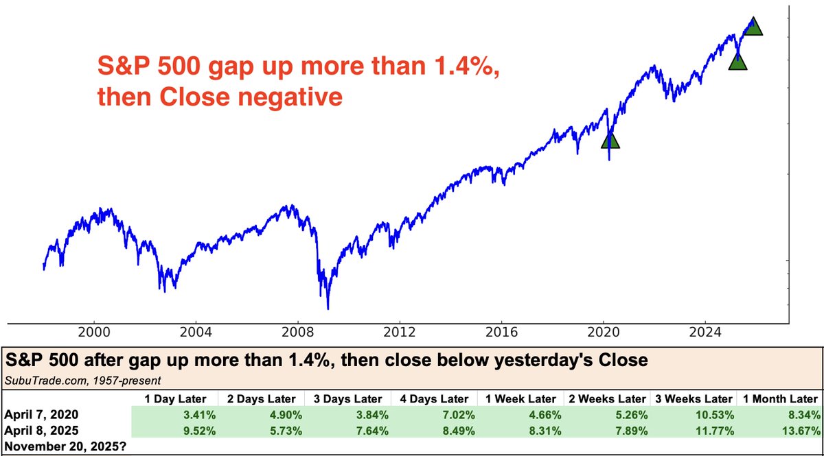 - According to @SubuTrade, bearish reversals of this magnitude are extremely rare, with just two prior examples since 1957, both occurring this decade in April 2020 and April 2025.