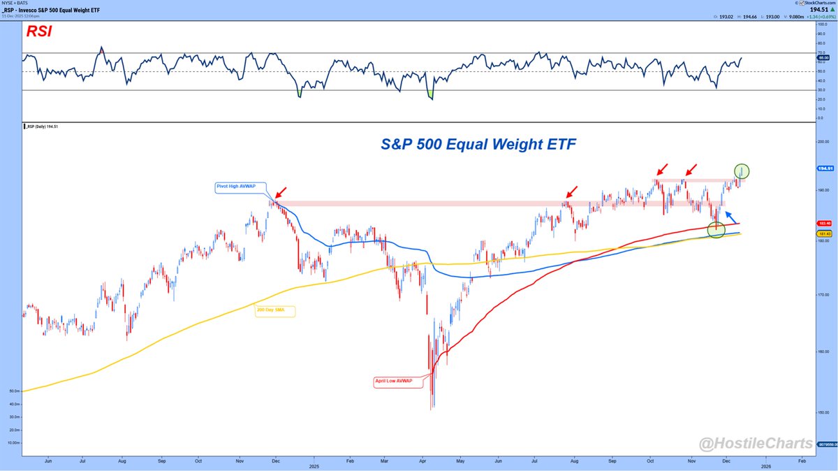 The Takeaway: While the S&P 500 continues to flirt with record highs, the equal-weight version is already there, with $RSP seeing a confirmed breakout over the past two sessions.